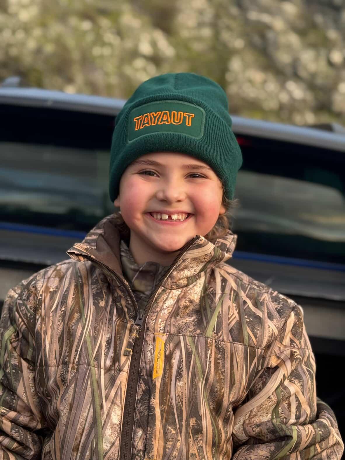 The TAYAUT embroidered green beanie is an ideal accessory for hunters and outdoor enthusiasts seeking warmth, visibility, and style. Made from 100% soft-touch acrylic , it offers a soft feel, a comfortable fit, and excellent cold resistance.